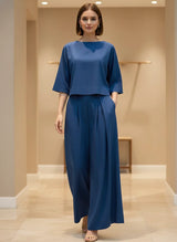 Conosci la sensazione: jeans che stringono, tessuto che segna. Il palazzo fluido accompagna ogni movimento senza comprimere. Taglio morbido dalla vita in giù, effetto snellente naturale.
